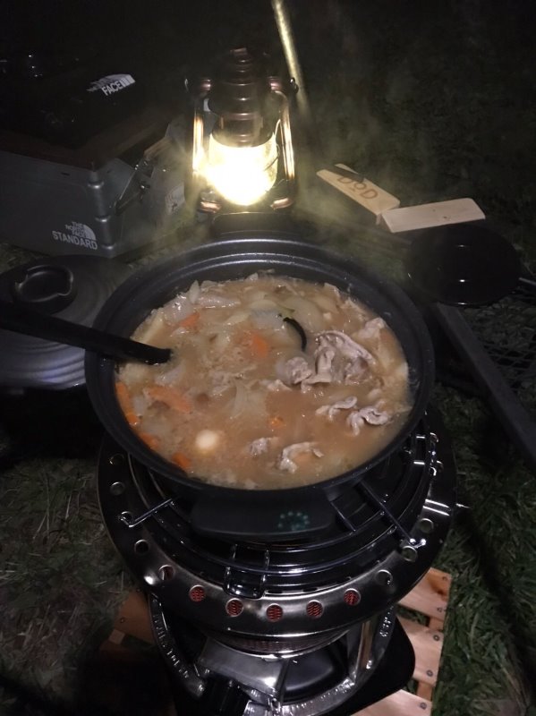 炭火でさんまを焼いたりストーブで豚汁を作りました。