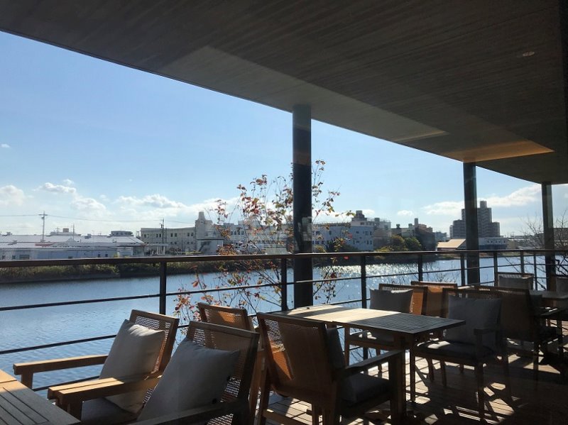 中川運河を眺めながらパン屋食事を頂く事ができますよ♪