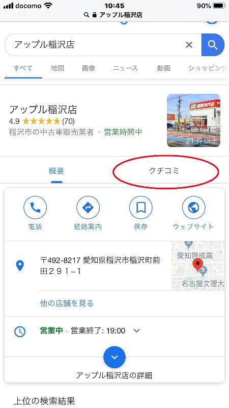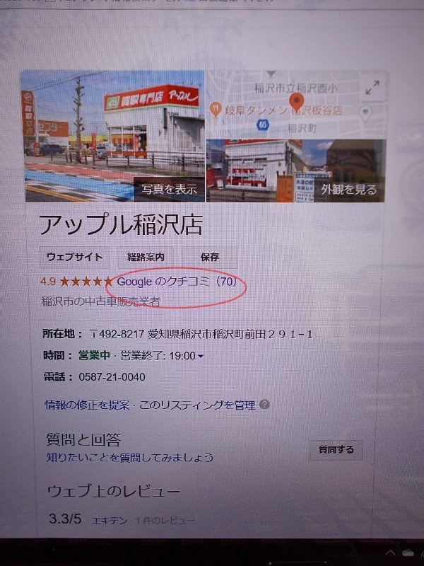 ポイントは、グーグルで『アップル稲沢店』