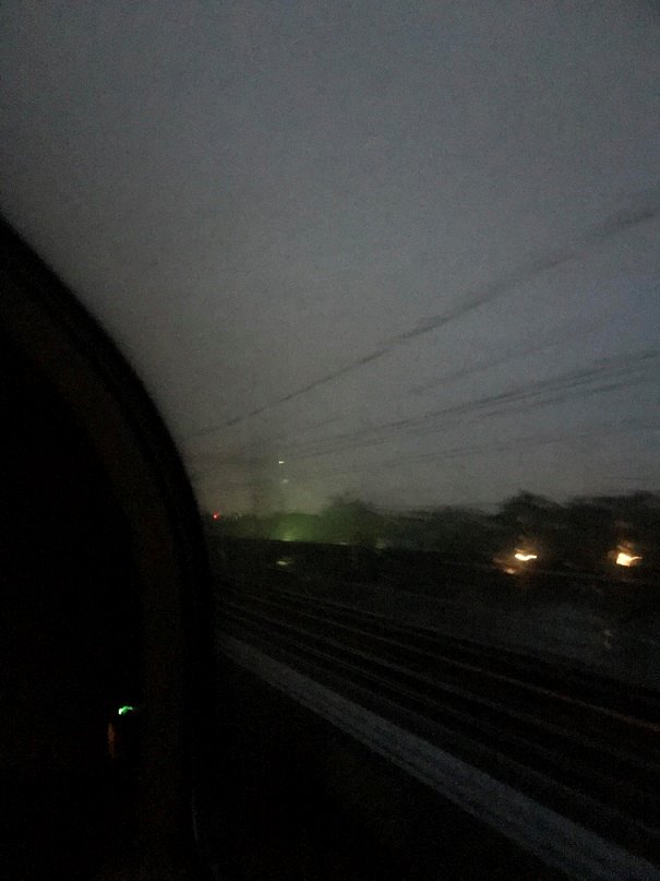 車窓に見える流れていく水銀灯の明かりの雰囲気を楽しむためです(‘◇’)ゞ
