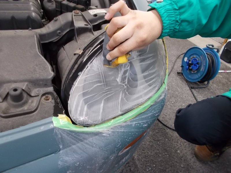 塗り終えたら、ついでにヘッドライトも研磨していきます☆