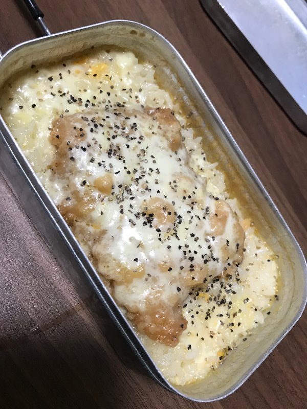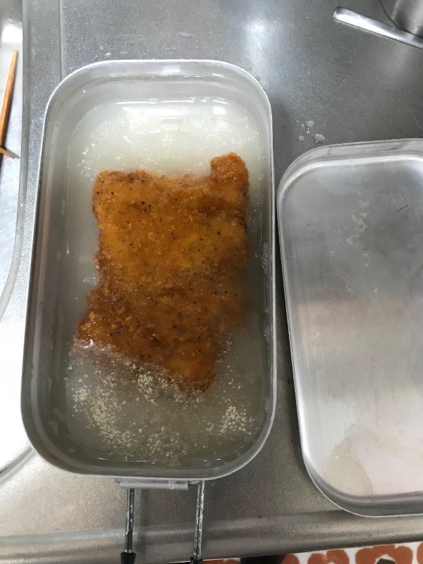 メスティンにお米を入れて30分ほど水に浸してその中にファミチキをドボン!