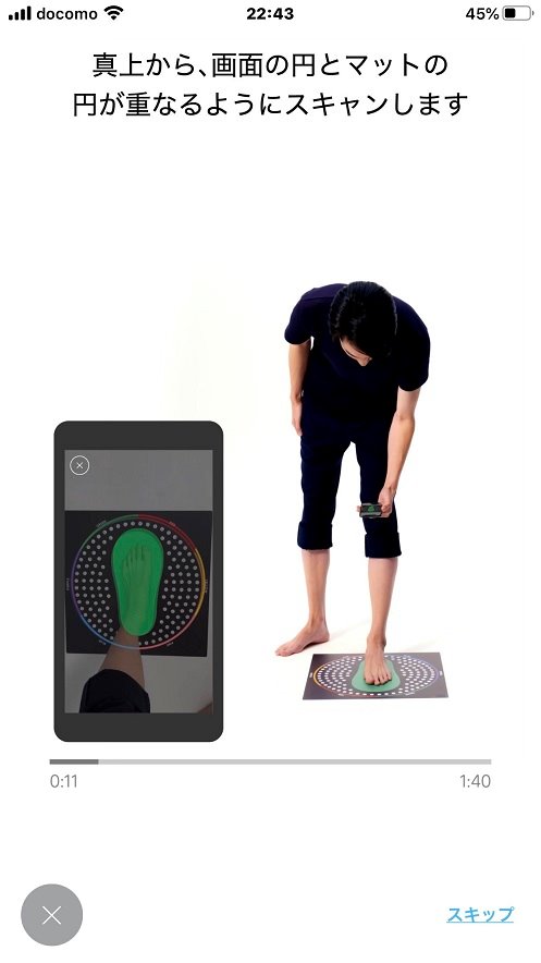 マットの上に足をのせて、スマホのカメラ機能をつかいながら足を360°スキャンします