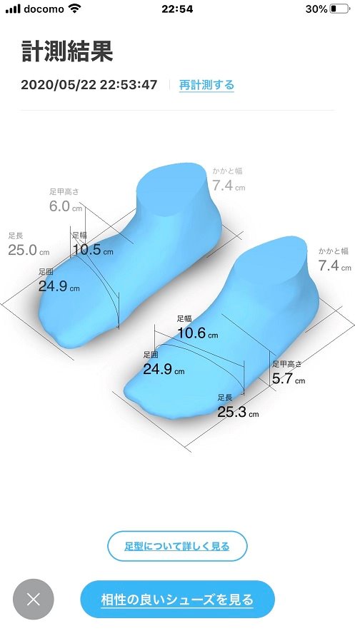 ZOZOタウンのアプリを使って足をスキャニングしていきます。