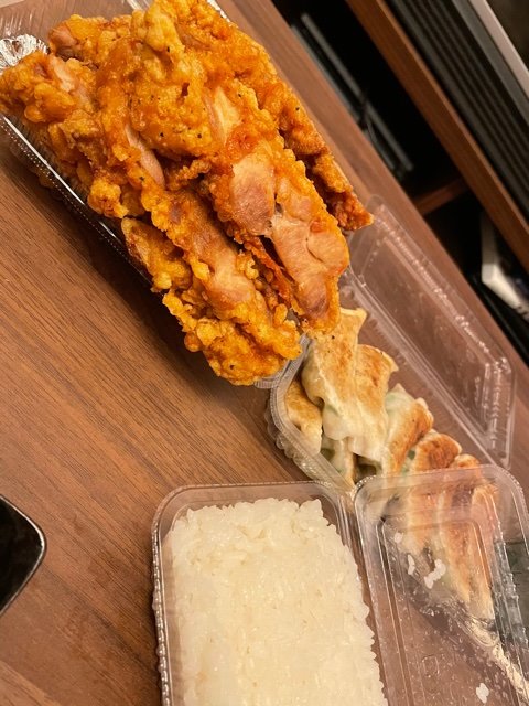 唐揚げと餃子とごはんのセットです。