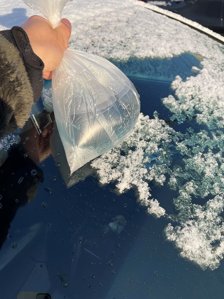 解氷スプレーと霜とりスクレイパーを車に用意しておくと