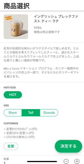 1、「ホワイトモカシロップに変更」←元々はクラシックシロップ