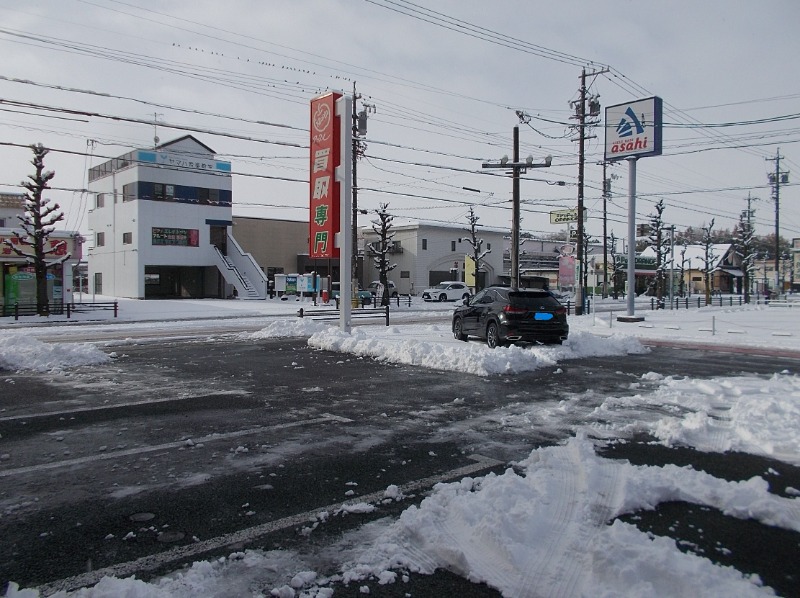 こちら本日8時頃の当店前の道路の様子です。