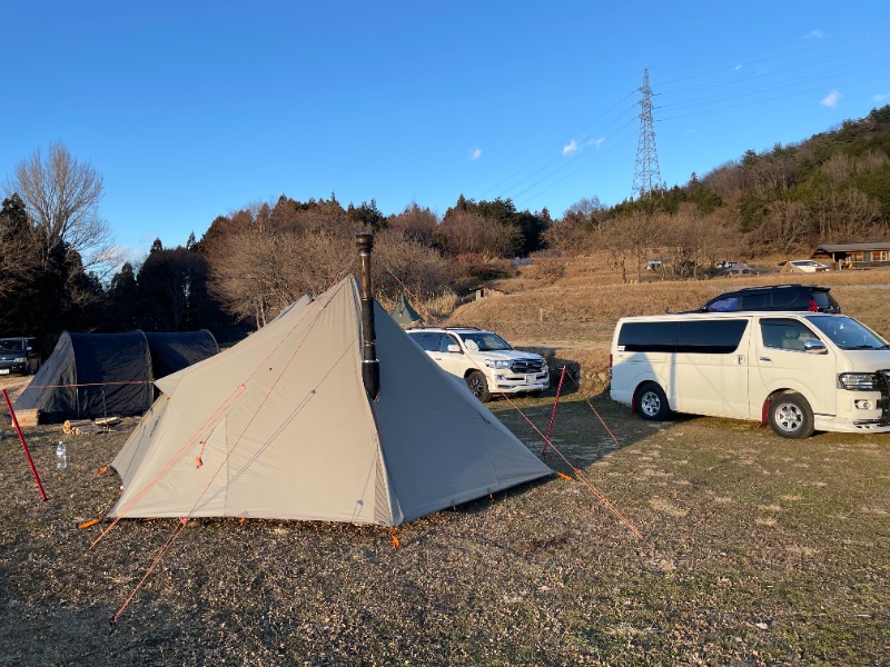 テント内は薪ストーブと石油ストーブのダブル使用で上着が要らないくらい暖かかったです(*´ω`)