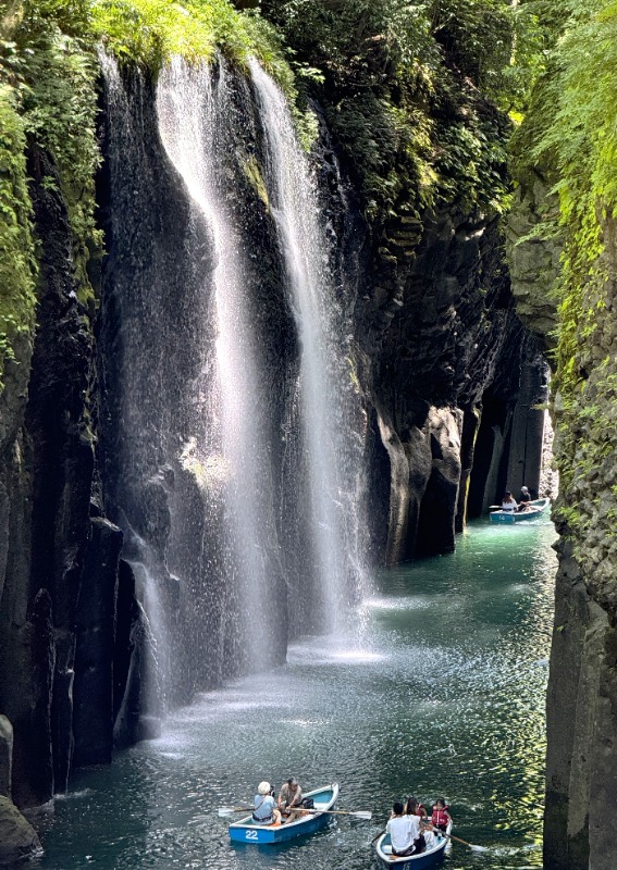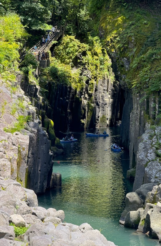 柱状節理の岩の断崖の合間を流れる川との渓谷美がたのしめる