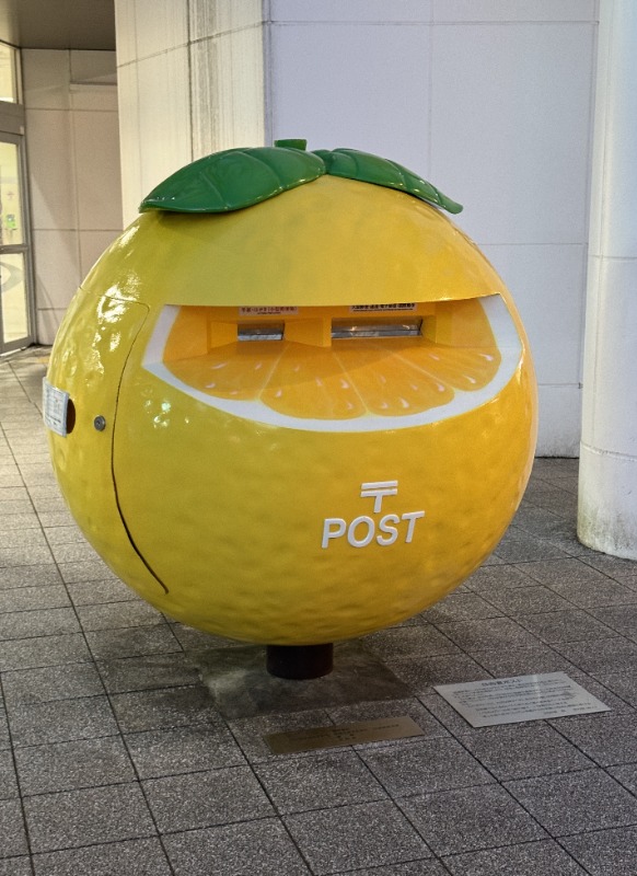 駅前には県の名産品の日向夏型のポストが(∩´∀`)∩