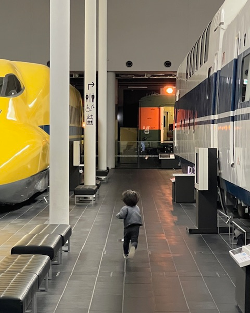 入館してすぐは電車の大きさに圧倒されてすこし怖がっていましたが、