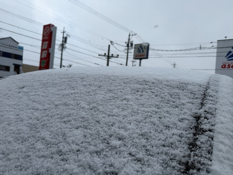 朝一番、車の上にはうっすら雪が積もっておりましたが、