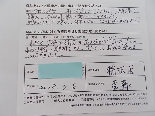 お車のご相談・ 査定だけでもOK! カンタン 入力 30秒 アップルがブランド買取始めました! お電話でも受付中! 受付時間10:00 ~ 19:00 0587-21-0040 お車のご相談・ 査定だけでもOK! カンタン 入力 30秒 アップルがブランド買取始めました! お電話でも受付中! 受付時間10:00 ~ 19:00 0587-21-0040 アップルがブランド買取始めました! お電話でも受付中! 受付時間10:00 ~ 19:00 0587-21-0040 店舗情報 在庫車 スタッフ紹介 ブログ お客様の声 キャンペーン 無料査定 click お客様の声 ご記入日: 2018/07/08 匿名様 素早く、丁寧な対応をありがとうございました。わかりやすい説明をきき、安心してお話を進めることができました。 前へ 次へ お客様の声一覧を見る