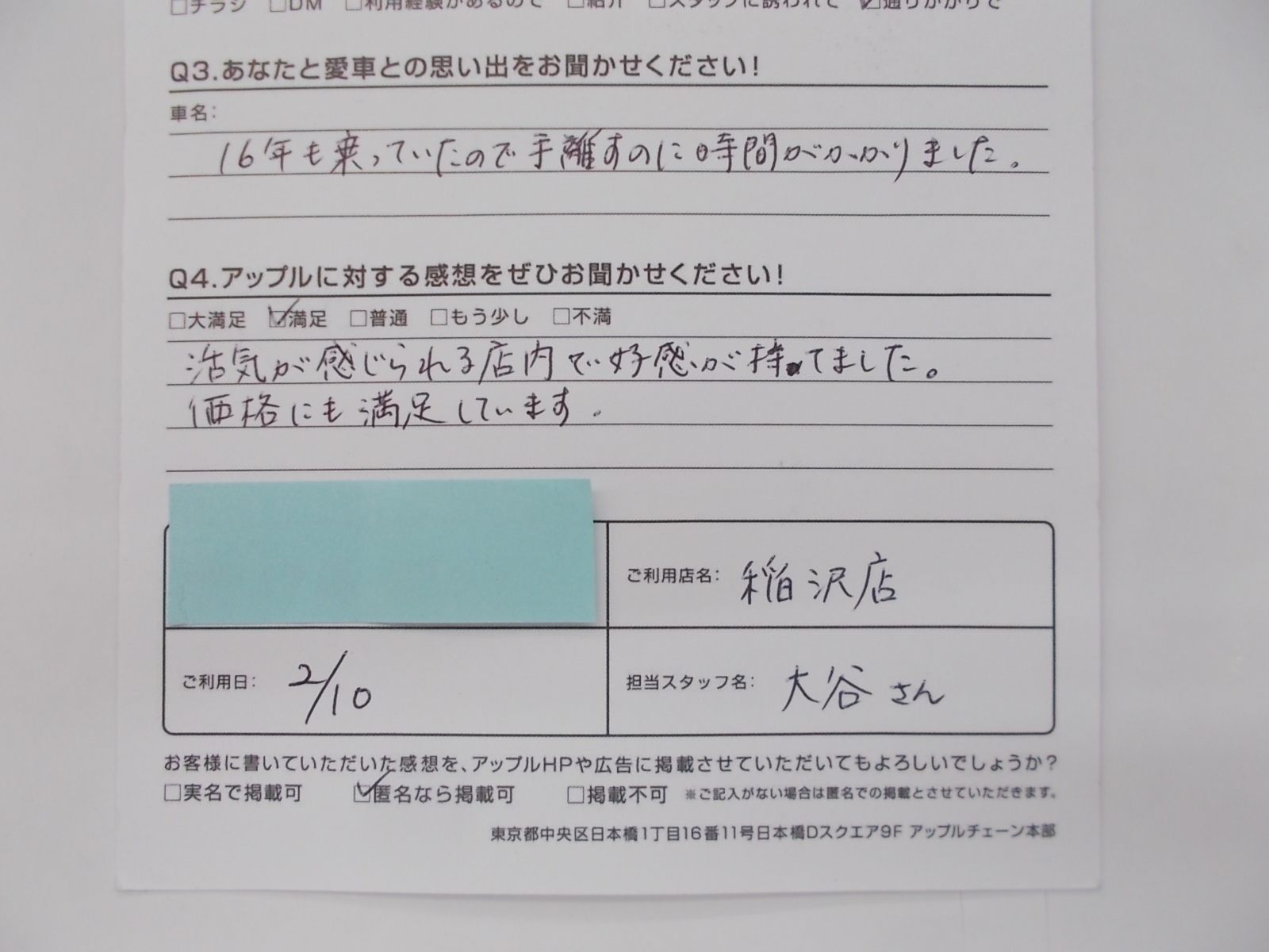お車のご相談・ 査定だけでもOK! カンタン 入力 30秒 アップルがブランド買取始めました! お電話でも受付中! 受付時間10:00 ~ 19:00 0587-21-0040 お車のご相談・ 査定だけでもOK! カンタン 入力 30秒 アップルがブランド買取始めました! お電話でも受付中! 受付時間10:00 ~ 19:00 0587-21-0040 アップルがブランド買取始めました! お電話でも受付中! 受付時間10:00 ~ 19:00 0587-21-0040 店舗情報 在庫車 スタッフ紹介 ブログ お客様の声 キャンペーン 無料査定 click お客様の声 ご記入日: 2020/02/10 匿名様 車名:日産 エルグランド 活気が感じられる店内で好感が持てました。価格にも満足しています。 前へ 次へ お客様の声一覧を見る