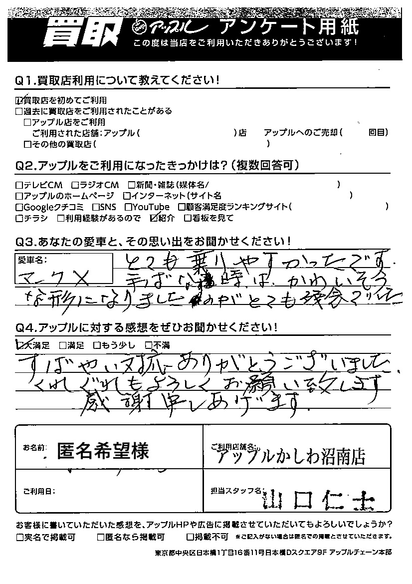 匿名希望様 車名:トヨタ マークX