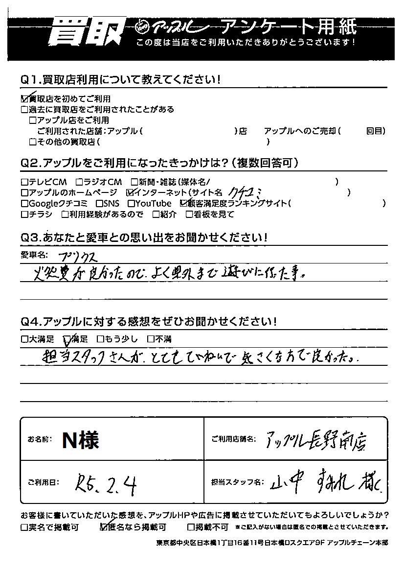 N様 車名:トヨタ プリウス(2023年3月~のPHVを含む)