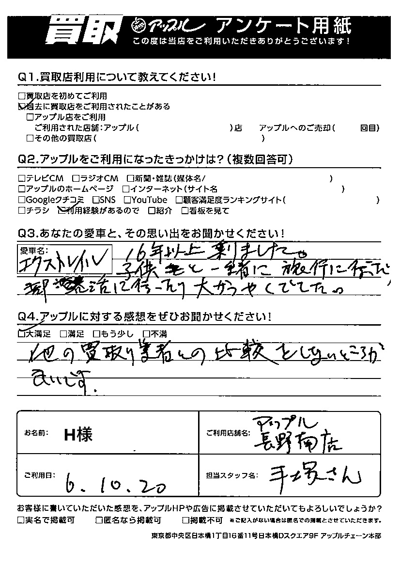 A:16年以上乗りました。子供と一緒に旅行に行ったり部活に行ったり