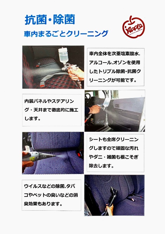 お車のご相談・ 査定だけでもOK! カンタン 入力 30秒 アップルがブランド買取始めました! お電話でも受付中! 受付時間10:00~19:30 0562-91-0500 お車のご相談・ 査定だけでもOK! カンタン 入力 30秒 アップルがブランド買取始めました! お電話でも受付中! 受付時間10:00~19:30 0562-91-0500 アップルがブランド買取始めました! お電話でも受付中! 受付時間10:00~19:30 0562-91-0500 店舗情報 在庫車 スタッフ紹介 ブログ お客様の声 キャンペーン お得 無料査定 click [ 未分類 ] 2020/04/16 (木) 13:34 【除菌・抗菌】車内まるごとクリーニング どこで購入されたお車でも施工いたします!!当店で購入いただいてから納車前に施工も可能です! 2020-04-16 13:34:30 新しい記事へ 古い記事へ 最新記事 ★クリスマスツリー★DAMDジムニー コンプリート取り扱い★Wプレゼントキャンペーン★夏季休暇のお知らせ★2023新春初売り★ 店舗情報に戻る 月別アーカイブ 2024年11月(1)2023年11月(1)2023年08月(2)2022年12月(1)2022年11月(1)2022年01月(1)2021年12月(2)2021年09月(1)2021年07月(1)2021年02月(1)2021年01月(2)2020年04月(4)2019年10月(1)2019年08月(1)2019年07月(1)