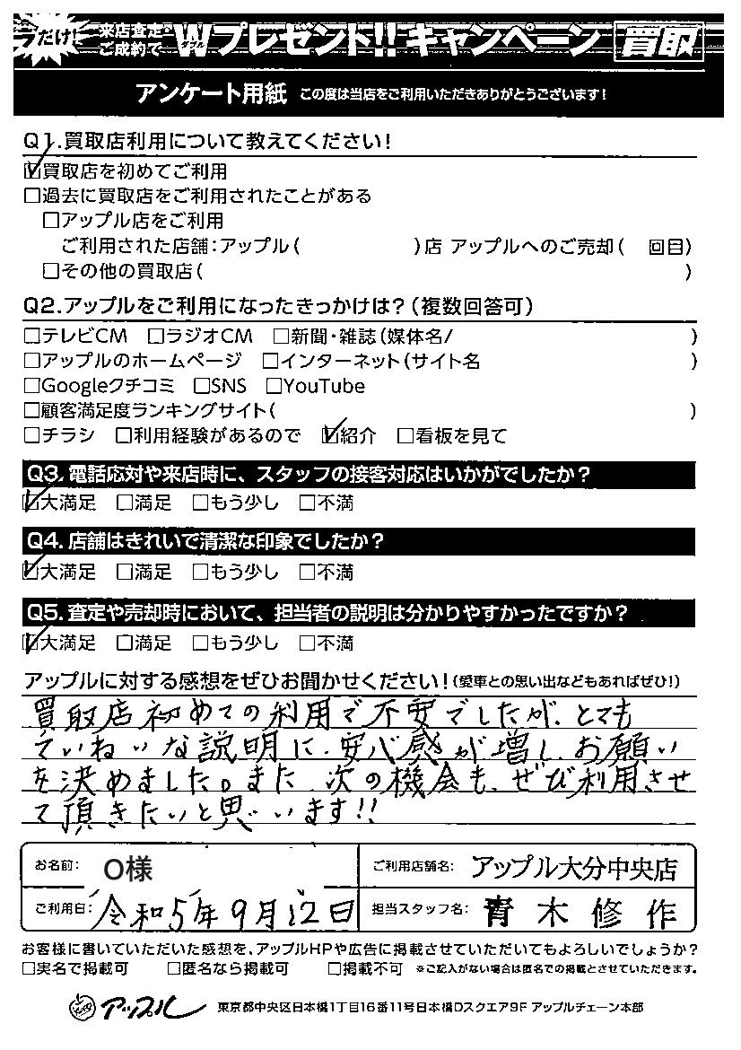 O 様 担当:青木修作