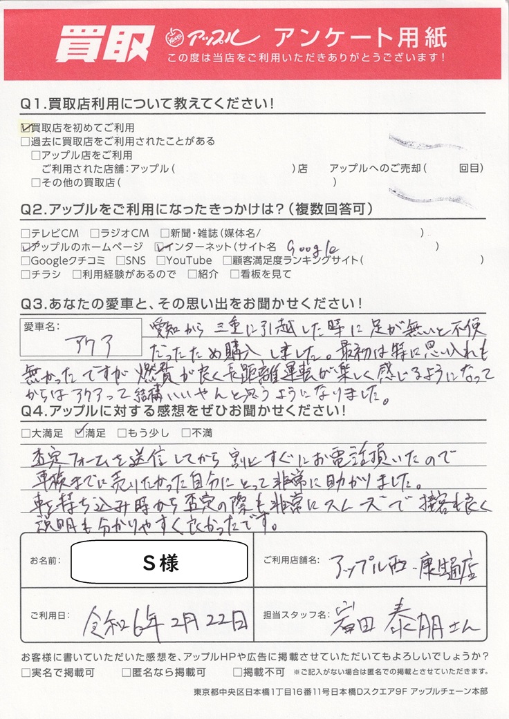 車を持ち込み時から査定の際も非常にスムーズで接客も良く