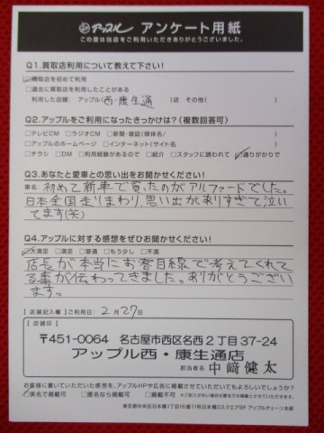 愛車との思い出:初めて新車で買ったのがアルファードでした。日本全国走りまわり、思い出がありすぎて泣いています(笑)