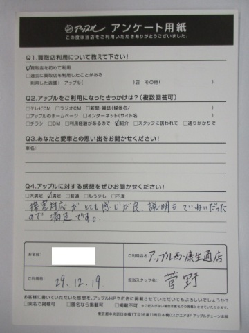 お車のご相談・ 査定だけでもOK! カンタン 入力 30秒 アップルがブランド買取始めました! お電話でも受付中! 受付時間 10:00 ~ 19:00 052-528-5335 お車のご相談・ 査定だけでもOK! カンタン 入力 30秒 アップルがブランド買取始めました! お電話でも受付中! 受付時間 10:00 ~ 19:00 052-528-5335 アップルがブランド買取始めました! お電話でも受付中! 受付時間 10:00 ~ 19:00 052-528-5335 店舗情報 在庫車 スタッフ紹介 ブログ お客様の声 キャンペーン お得 無料査定 click お客様の声 ご記入日: 2017/12/19 匿名様 愛車 R2感想 接客態度がとても感じが良、説明もていねいだったので 満足です。 前へ 次へ お客様の声一覧を見る