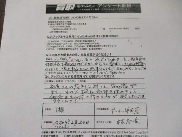 社員さんの応対に対して安心感がもて、その人柄に売却を決めました。