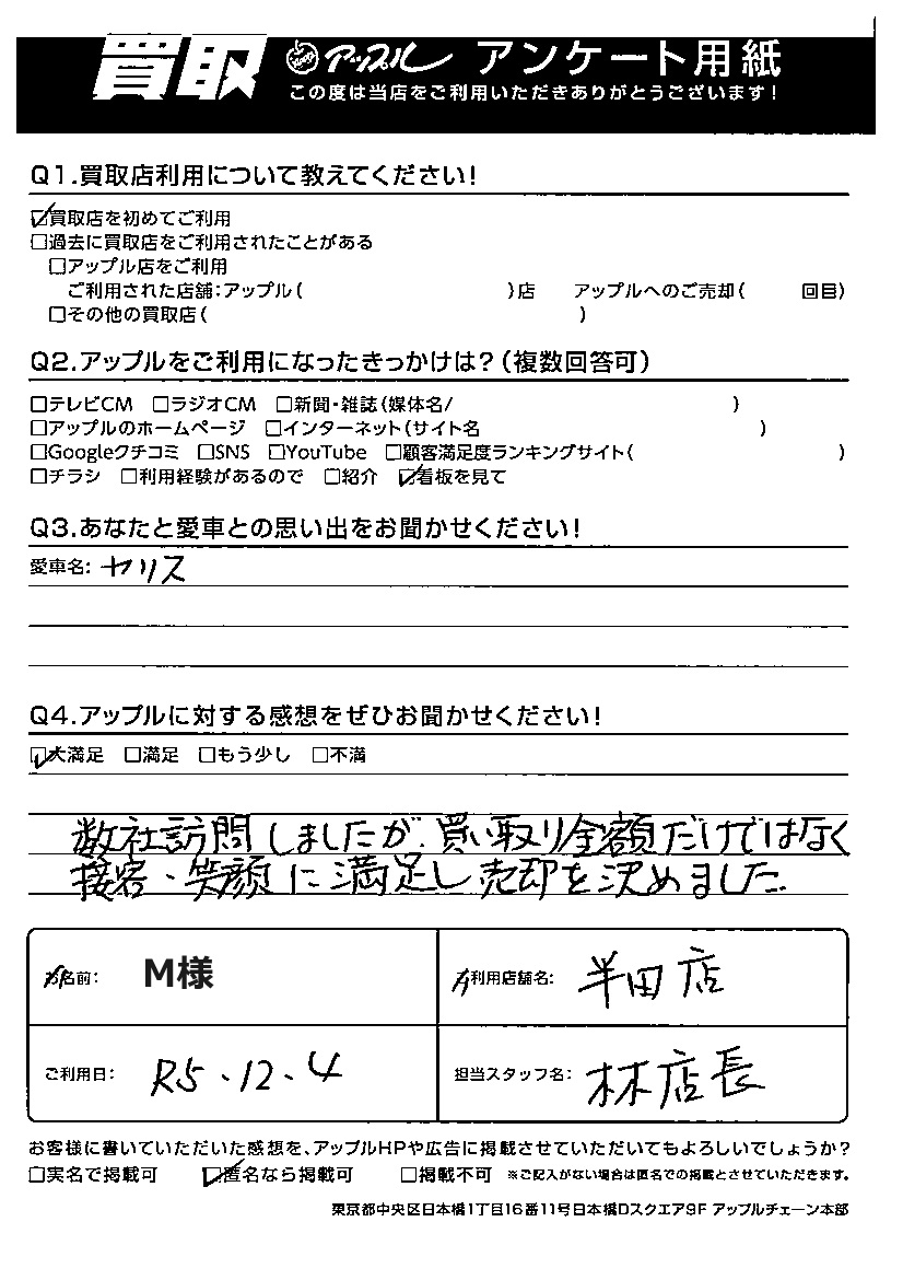 A Mさま 今回は、ご利用ありがとうございました。楽しい商談、お話で盛り上げてもらい良い時間を過ごせました。またのご利用お待ちしていますね。
