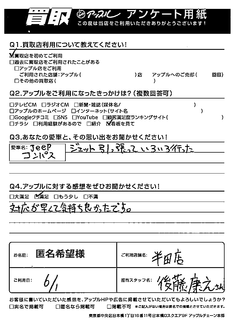 匿名希望様 車名:ジープ コンパス