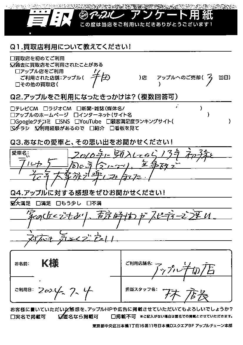 ご利用日:2024年7月4日 担当:林店長