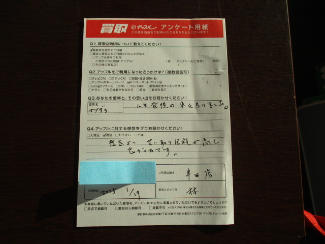 A S様の人生最後のお車を買い取りすることが出来て嬉しく思います。