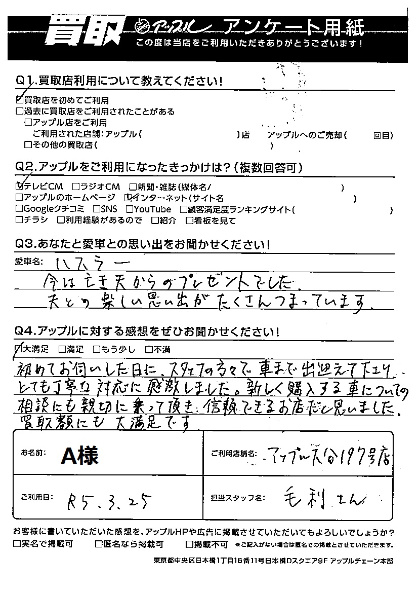 楽しく購入する車についての相談にも親切に乗って頂き、