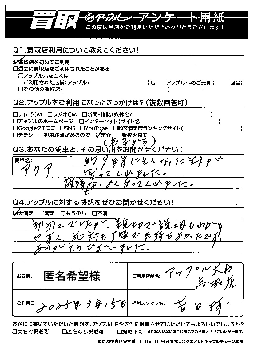 匿名希望 様 担当:吉田