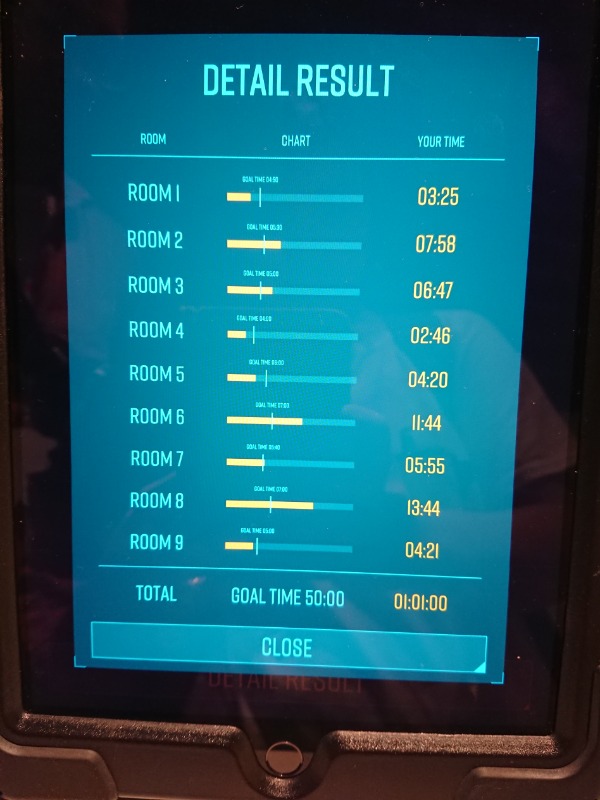 私は8つ目の部屋でタイムオーバーになってしまい、10分の追加をして9つ目の部屋まで行きました(#^^#)