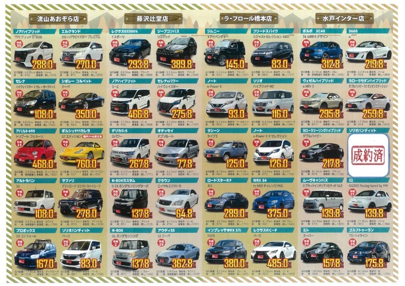 お車のご相談・ 査定だけでもOK! カンタン 入力 30秒 アップルがブランド買取始めました! お電話でも受付中! 受付時間10:00 ~ 18:30 0120-974-899 お車のご相談・ 査定だけでもOK! カンタン 入力 30秒 アップルがブランド買取始めました! お電話でも受付中! 受付時間10:00 ~ 18:30 0120-974-899 アップルがブランド買取始めました! お電話でも受付中! 受付時間10:00 ~ 18:30 0120-974-899 店舗情報 在庫車 スタッフ紹介 ブログ お客様の声 キャンペーン お得 無料査定 click [ つぶやき ] 2024/10/05 (土) 13:10 4店舗合同✧オータムフェア✧実施中!! 皆さんこんにちは!!アップル藤沢辻堂店の長橋です!!10月5日からお得なキャンペーン始まります♪4店舗合同✧オータムフェア✧!期間:10/5~10/31アップルは秋の快適なドライブをサポートします♪お車ご購入特典★3つから選べる!●お車をご購入いただいたお客様に3つの特典の中からご購入特典1つプレゼント!★バッテリー新品交換★ガソリン満タン★希望ナンバー買取査定♪来店お客様特典!●販売商談&買取査定をしていただいたお客様にお車1台につき500円分のQUOカードをプレゼント!当店の厳選したおススメ車両になります!!買取直販でしかできないお値打ち価格で販売中です!(^^)!お車のお乗換えをご検討中のあなたこの機会にご相談ください(^^♪ 2024-10-05 13:10:15 新しい記事へ 古い記事へ 最新記事 メガーヌスポーツツアラーGTの最大の特徴 「4CONTROL(4輪操舵)」メガーヌスポーツツアラーGTのドライビングモードとは?買取厳選車両 入庫情報!「86GT!!!」メガーヌスポーツツアラーGTの足元はやっぱりカッコいい【GW前に車決めませんか?】営業スタッフ高木は増車します!! 店舗情報に戻る 月別アーカイブ 2026年04月(6)2026年03月(11)2026年02月(5)2026年01月(2)2025年12月(9)2025年11月(4)2025年10月(4)2025年09月(12)2025年08月(8)2025年07月(6)2025年06月(3)2025年04月(2)2025年03月(2)2025年02月(2)2024年12月(3)2024年11月(2)2024年10月(6)2024年09月(1)2024年05月(1)2024年04月(1)2024年02月(1)2024年01月(1)2023年12月(1)2023年11月(1)2023年10月(2)2023年09月(1)2023年08月(1)2023年07月(3)2023年06月(2)2023年05月(1)2023年04月(1)2023年02月(1)2023年01月(3)2022年12月(3)2022年11月(2)2022年10月(1)2022年09月(4)2022年08月(1)2022年07月(1)2022年06月(1)2022年04月(1)2022年03月(2)2022年02月(1)2022年01月(2)2021年12月(2)2021年11月(2)2021年10月(2)2021年09月(1)2021年08月(2)2021年07月(4)2021年06月(4)2021年05月(5)2021年04月(4)2021年03月(1)2021年02月(4)2021年01月(6)2020年12月(1)2020年11月(3)2020年10月(1)2020年09月(1)2020年08月(1)2020年07月(1)2020年06月(2)2020年05月(1)2020年04月(1)2020年03月(1)2020年02月(1)2020年01月(1)2019年12月(2)2019年11月(1)2019年09月(2)2019年08月(3)2019年07月(4)2019年06月(3)2019年05月(1)2019年04月(1)2019年03月(1)2019年02月(2)2019年01月(4)2018年12月(4)2018年11月(2)2018年10月(5)2018年09月(2)2018年08月(3)2018年07月(4)2018年06月(4)2018年05月(3)2018年04月(5)2018年03月(1)2018年02月(3)2018年01月(3)2017年12月(4)2017年11月(4)2017年10月(1)2017年09月(2)2017年08月(1)2017年07月(1)2017年06月(2)2017年05月(1)2017年01月(4)2016年12月(1)2016年11月(1)2016年10月(1)2016年09月(2)2016年08月(1)2016年07月(2)2016年06月(1)2016年05月(2)2016年04月(1)2016年03月(1)2016年02月(1)2016年01月(1)2015年12月(1)2015年11月(1)2015年09月(2)2015年08月(1)2015年07月(2)2015年04月(1)2015年03月(1)2015年02月(1)2015年01月(2)2014年12月(2)2014年10月(3)