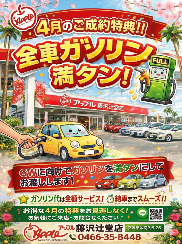 ご納車時には満タン状態でお渡しし、そのままドライブに出かけていただけます。