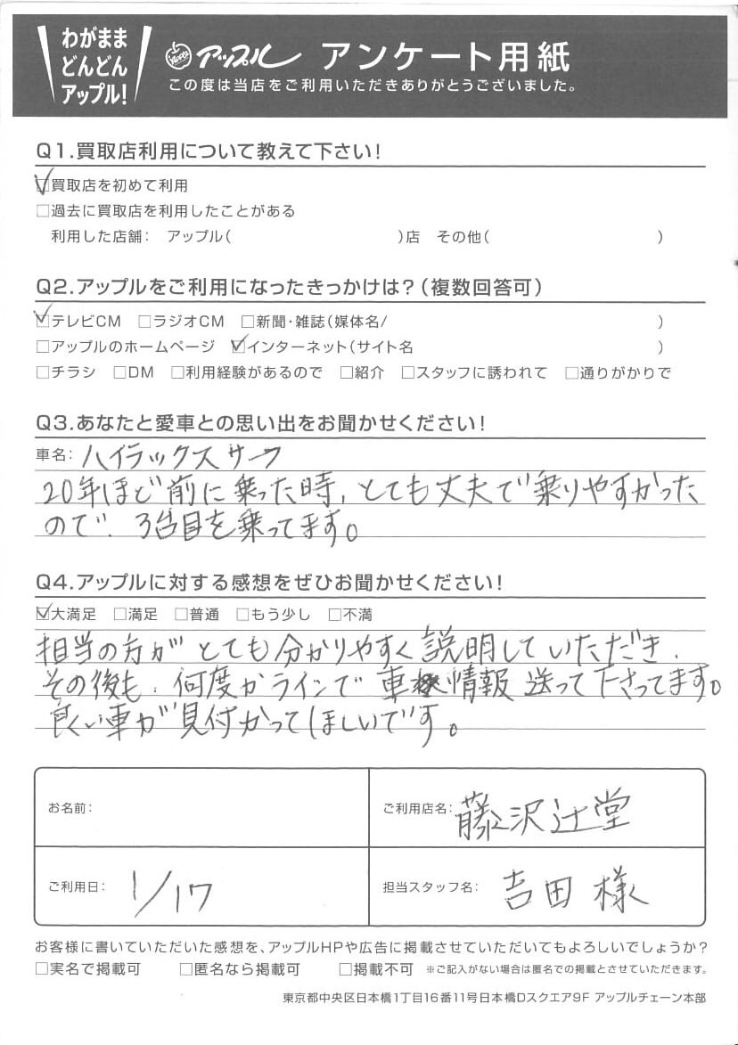 H様 車名:トヨタ ハイラックスサーフ