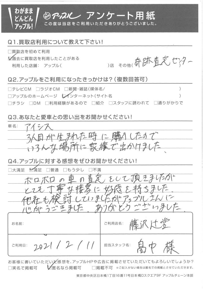 匿名希望様 車名:トヨタ アイシス