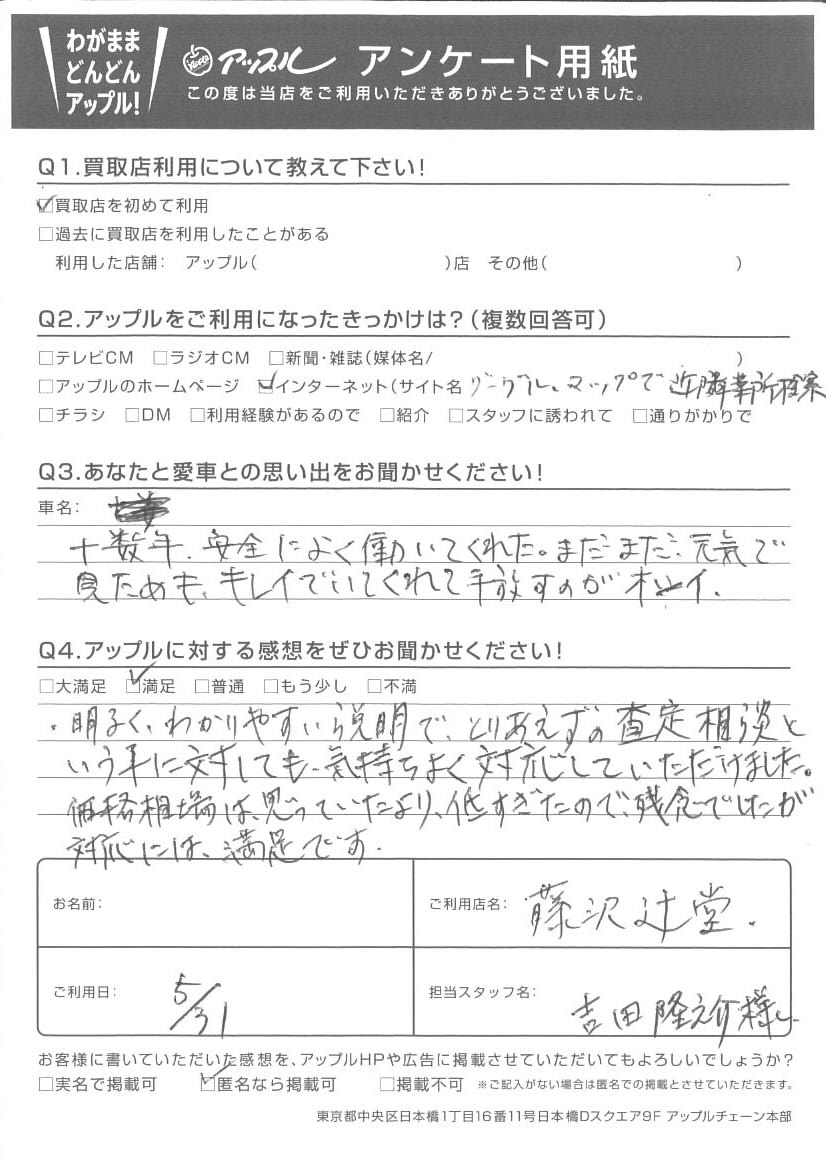 価格相場は思っていたより低すぎたので、残念でしたが対応