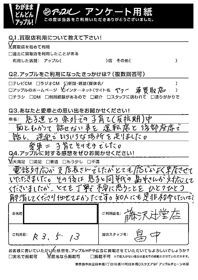A.電話対応が支店長さんでしたがとても感じがよく来店させていただきました。