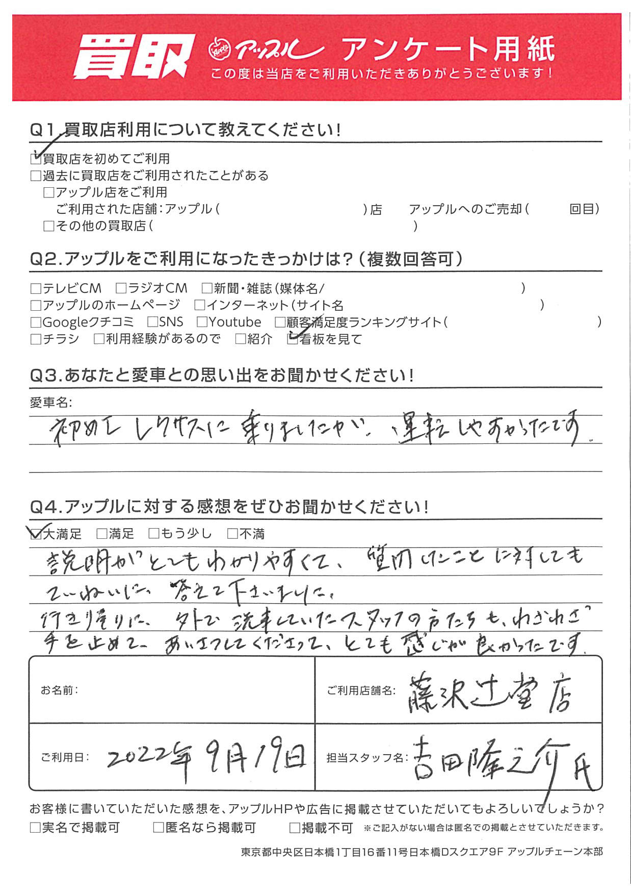 A.初めてレクサスに乗りましたが、運転しやすかったです。