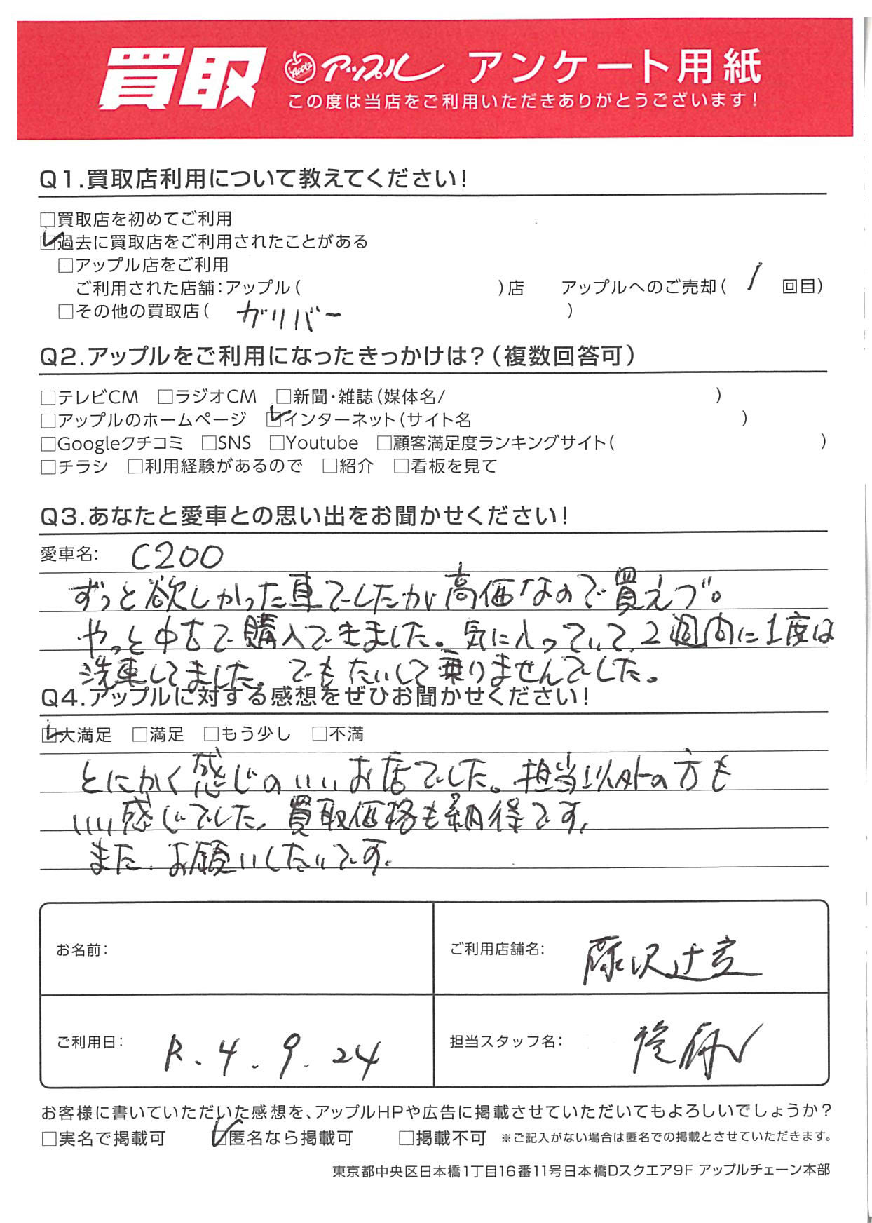 匿名希望様 車名:メルセデス・ベンツ Cクラス
