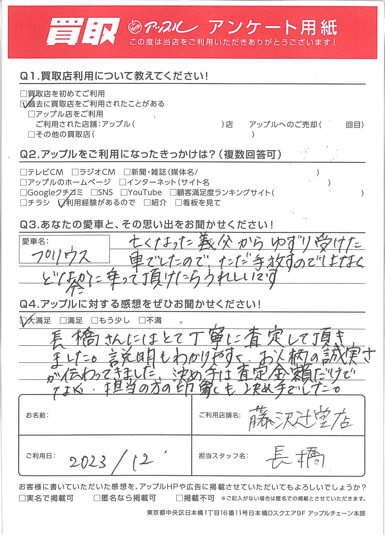 N様 車名:トヨタ プリウス(2023年3月~のPHVを含む)