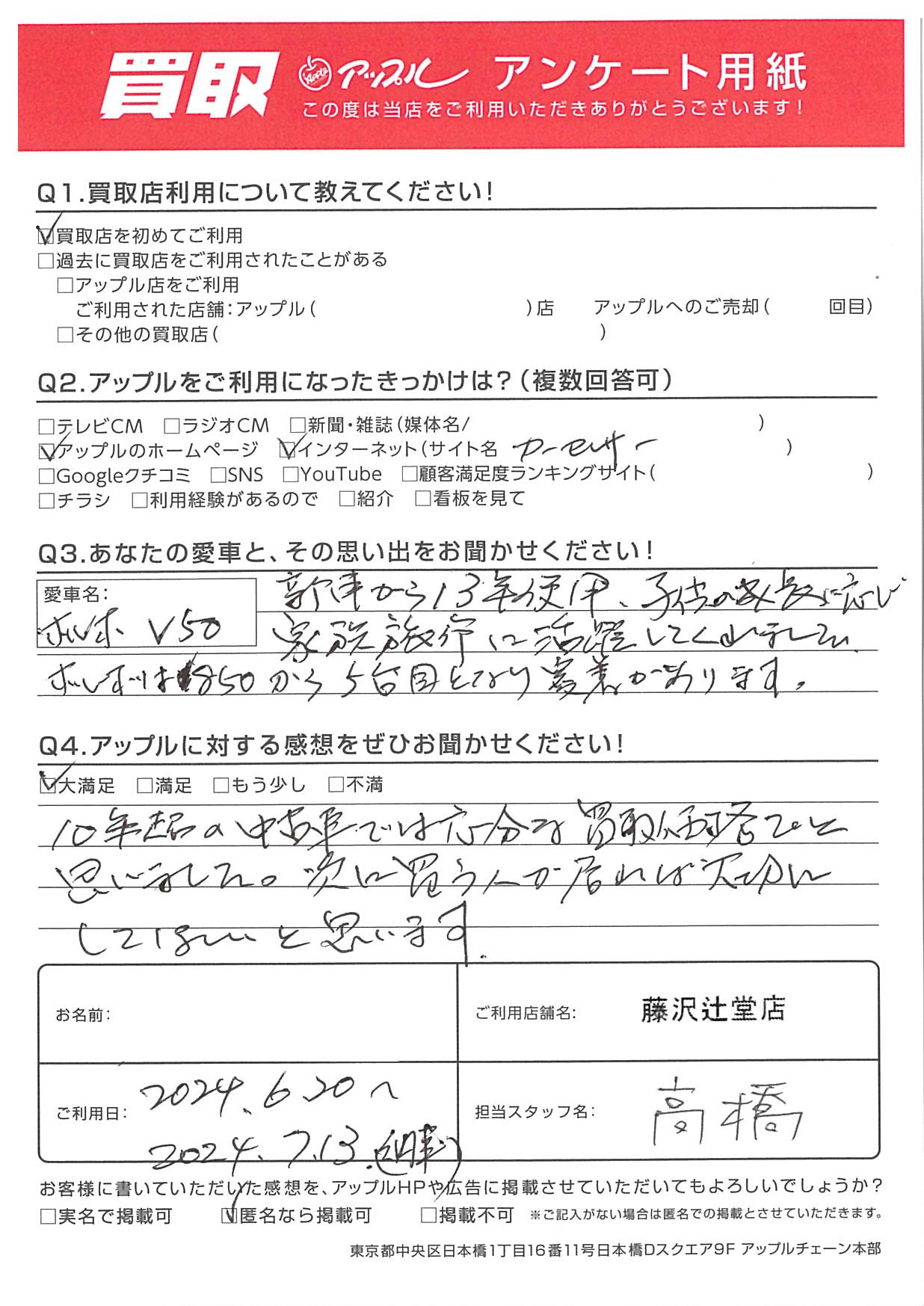 A.新車から13年使用、子供の成長に応じ家族旅行に活躍してくれました。