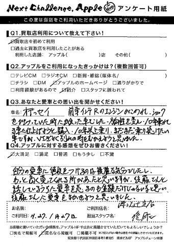 A.自分の愛車に値段をつけるのは複雑な気分でしたし、もっと高く買ってくれる所があったと思いますが、後藤さんと話しているうちに愛車を売るのも金額だけじゃないなと思い、後藤さんに愛車をまかせようと思いました。