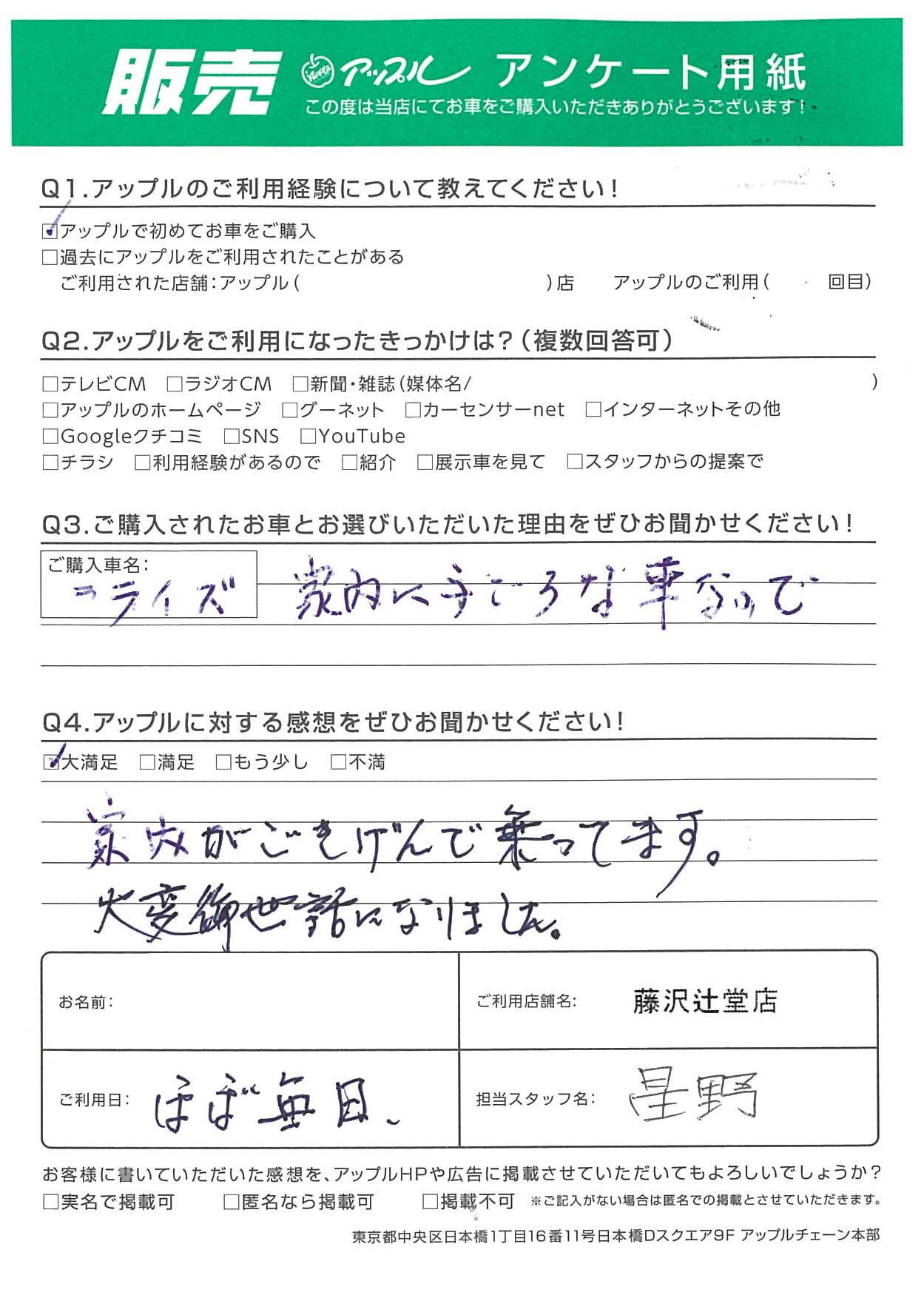 お車のご相談・ 査定だけでもOK! カンタン 入力 30秒 アップルがブランド買取始めました! お電話でも受付中! 受付時間10:00 ~ 18:30 0120-974-899 お車のご相談・ 査定だけでもOK! カンタン 入力 30秒 アップルがブランド買取始めました! お電話でも受付中! 受付時間10:00 ~ 18:30 0120-974-899 アップルがブランド買取始めました! お電話でも受付中! 受付時間10:00 ~ 18:30 0120-974-899 店舗情報 在庫車 スタッフ紹介 ブログ お客様の声 キャンペーン お得 無料査定 click お客様の声 ご記入日: 2025/07/31 K様 車名:トヨタ ライズ Q.お車を選んだ理由をお聞かせください!A.家内に手ごろな車なのでQ.アップルに対する感想をぜひお聞かせください!A.家内がごきげんで乗ってます。 大変御世話になりました。担当:星野 前へ 次へ お客様の声一覧を見る