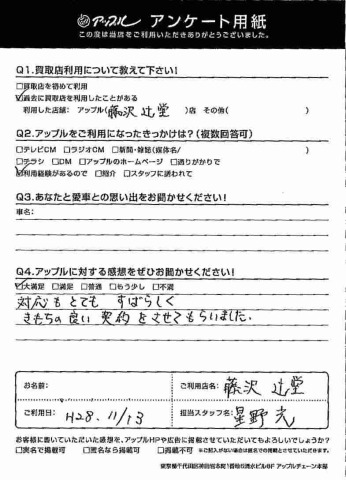 お車のご相談・ 査定だけでもOK! カンタン 入力 30秒 アップルがブランド買取始めました! お電話でも受付中! 受付時間10:00 ~ 18:30 0120-974-899 お車のご相談・ 査定だけでもOK! カンタン 入力 30秒 アップルがブランド買取始めました! お電話でも受付中! 受付時間10:00 ~ 18:30 0120-974-899 アップルがブランド買取始めました! お電話でも受付中! 受付時間10:00 ~ 18:30 0120-974-899 店舗情報 在庫車 スタッフ紹介 ブログ お客様の声 キャンペーン お得 無料査定 click お客様の声 ご記入日: 2017/02/02 F様 お車:ライフQ.アップルの感想は?A.対応もとてもすばらしく きもちの良い契約をさせてもらいました。 前へ 次へ お客様の声一覧を見る