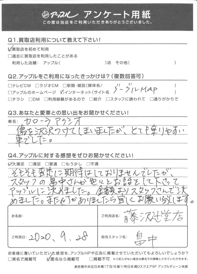 さんが色々とお話をして下さってアップルに決めました。金額より