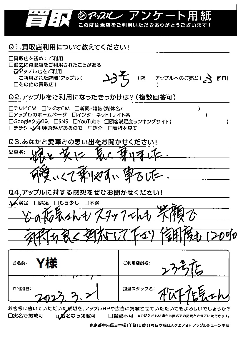 ご利用日: 2023年3月21日 担当: 松下